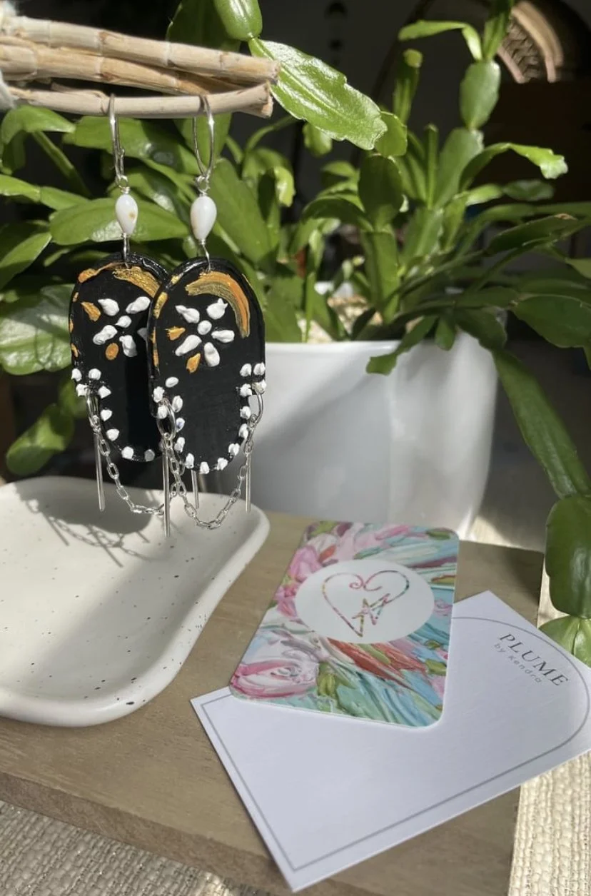 WELCOME TO THEGIFT shoP Categories: All Accessories Clothing Kitchen Originals Ornaments Prints Stationary All / "Sunshine Flower" Earrings Sale Price: $48.75 Original Price: $75.00 Sale "Green Goddess" Earrings Sale Price: $32.50 Original Price: $50.00 Sale "Treasure" Earrings Sale Price: $32.50 Original Price: $50.00 Sale Headband Sale Price: $23.00 Original Price: $27.00 Sale Beanie Sale Price: $19.00 Original Price: $36.00 Sale Tote Bag Sale Price: $29.00 Original Price: $39.00 Sale "Sunset Sphere " Earrings Sale Price: $42.25 Original Price: $65.00 Sale "Spring Tangerine" Earrings Sale Price: $42.25 Original Price: $65.00 Sale "Fresh Daisy" Earrings Sale Price: $48.75 Original Price: $75.00 Sale Gift Card from $25.00