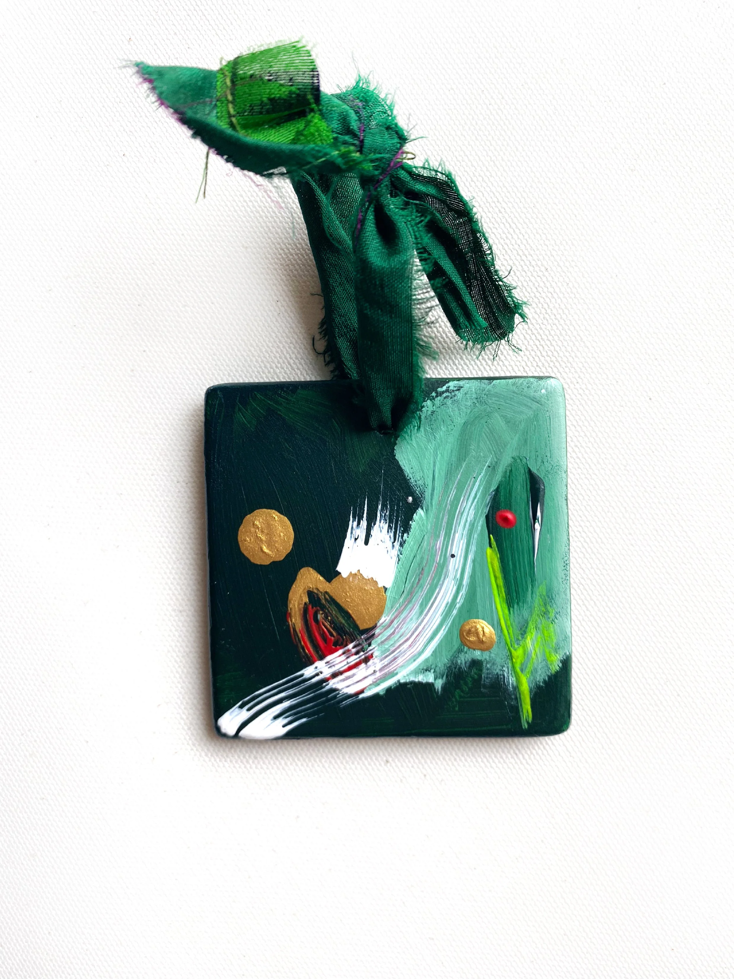This 2.5” ceramic ornament is painted with luscious paint textures and expressive brush strokes. Topped off with a variety ivory satin ribbon. Each ornament is signed, personally wrapped and sealed with love directly from the CAF Creations studio in Rochester, NY.
