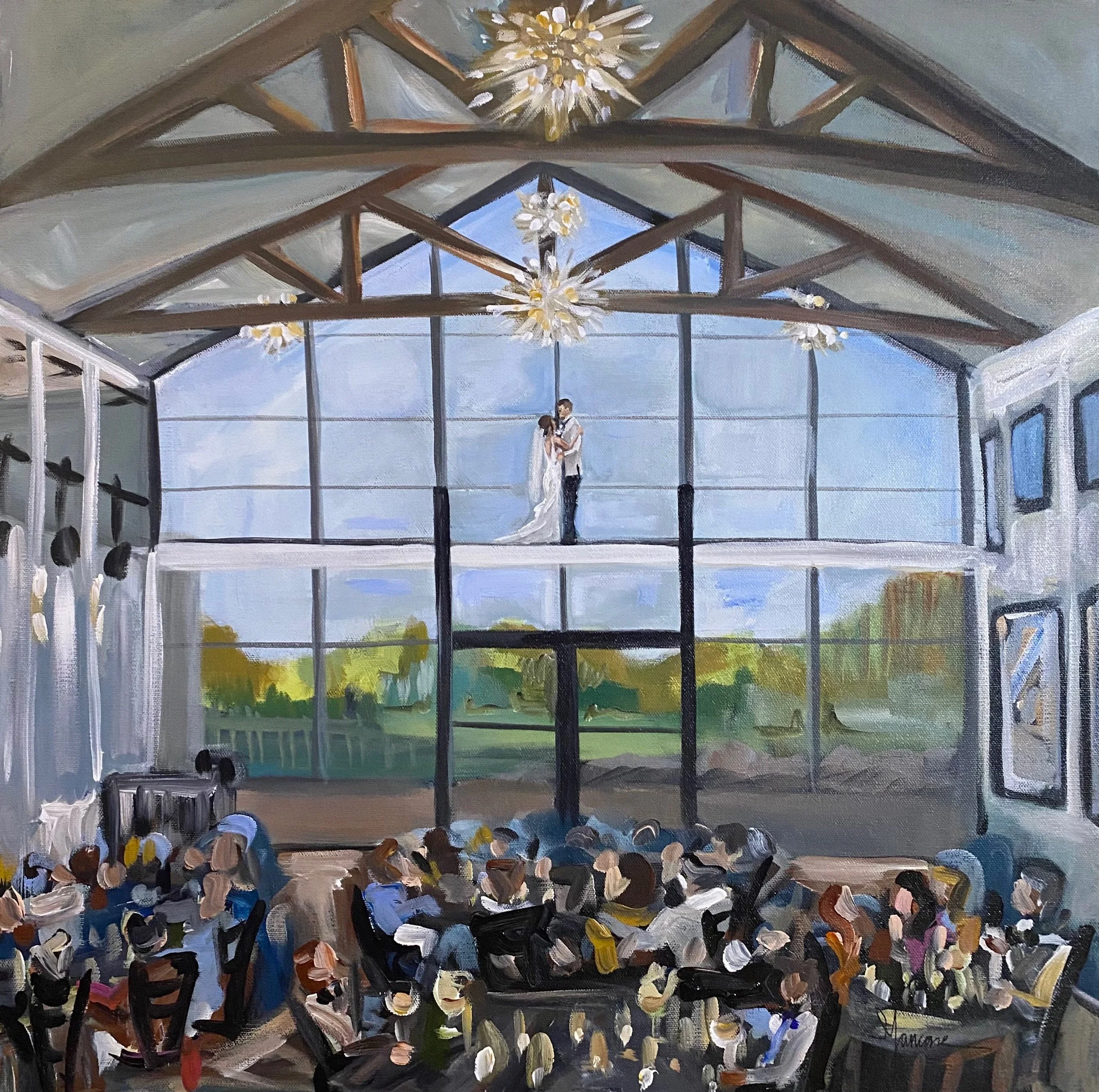 The original painting stands 24”x24” and captures Jessica and Dustin‘s first dance at the Sterling at Arrowhead in Akron, NY :)